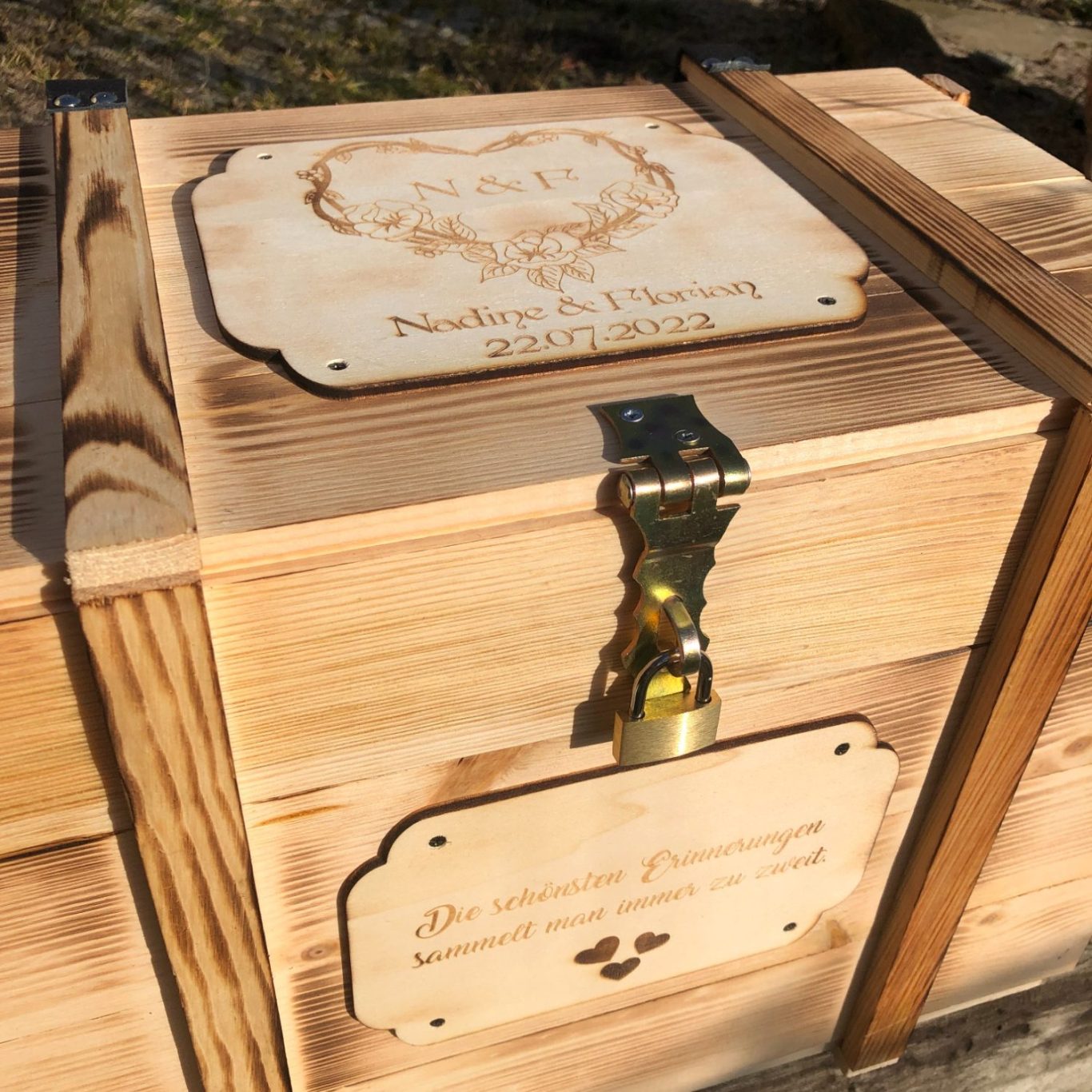 Die personalisierte Hochzeitkiste ist das ideale Geschenk für Brautpaare, um ihre schönsten Erinnerungen an den großen Tag zu bewahren. Mit dieser einzigartigen Hochzeitsbox mit Gravur schaffen Sie ein zeitloses Andenken, das das Brautpaar für immer schätzen wird.