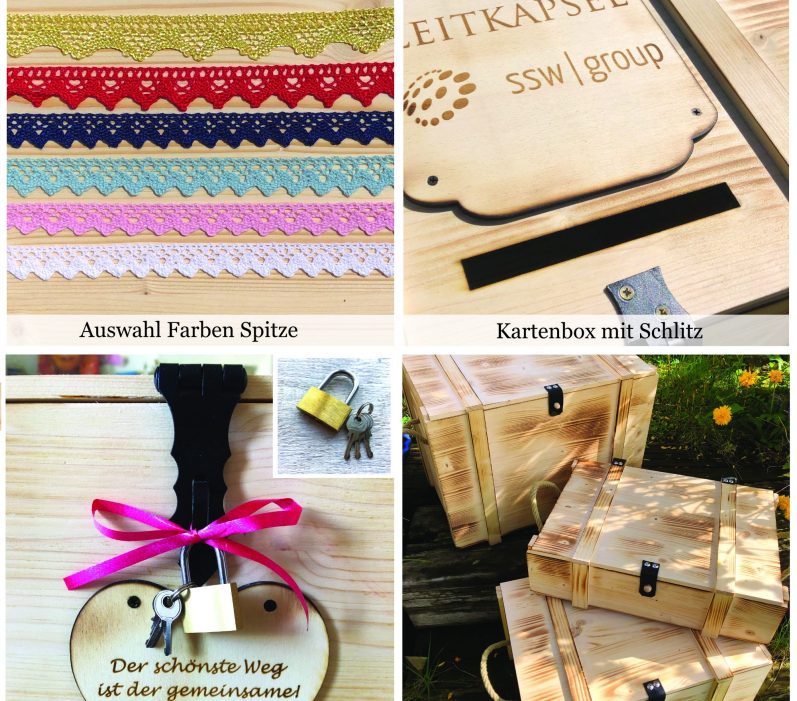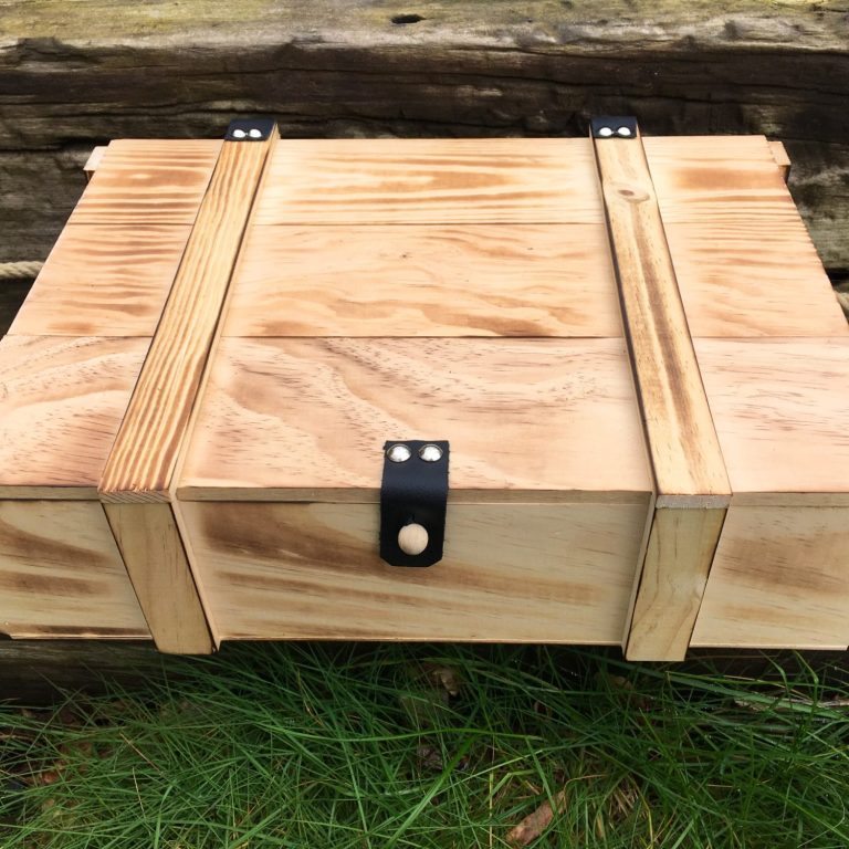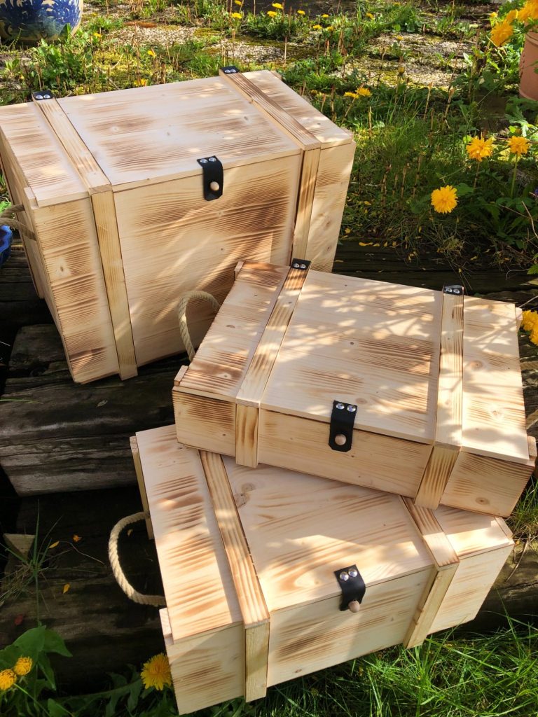 Unsere Erinnerungskisten, in verschiedenen Grössen von klein bis XXL, sind aus hochwertigem FSC zertifizierten Vollholz (Nadelholz) hergestellt. Sie verfügen über Hanfseile an den Seiten für einen angenehmen Tragekomfort. Die Scharniere sind aus hochwertigem Leder hergestellt.